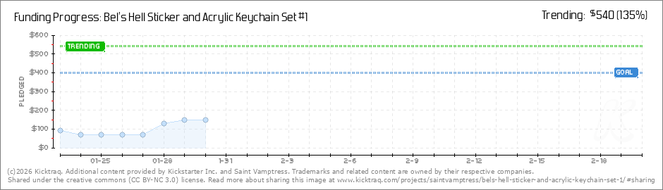 Help your backers reach your daily goals and help others see how you're doing. It's easy, with Kicktraq Mini.Here are a few quick snippits of code you can use to embed your personalized widget on your website, in your blog, and even on your favorite forum.
