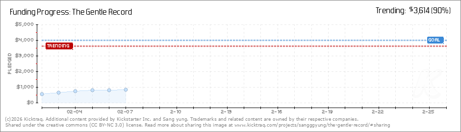 Help your backers reach your daily goals and help others see how you're doing. It's easy, with Kicktraq Mini.Here are a few quick snippits of code you can use to embed your personalized widget on your website, in your blog, and even on your favorite forum.