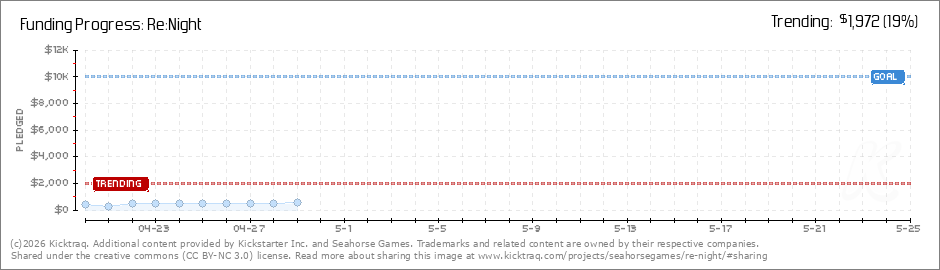 Help your backers reach your daily goals and help others see how you're doing. It's easy, with Kicktraq Mini.Here are a few quick snippits of code you can use to embed your personalized widget on your website, in your blog, and even on your favorite forum.