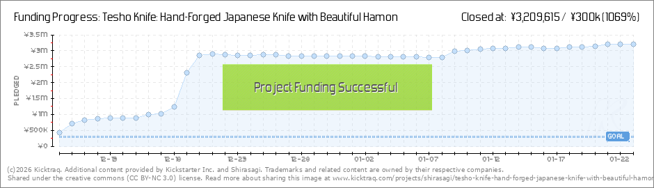 Dear all, Happy New Year and thank you so much for your patience and understanding with the sudden change in this project. We've included a new knife as a reward and add-on. Introducing, the Tesho Knife Minamo!! The artisans at TETSUya have poured... (Read More)