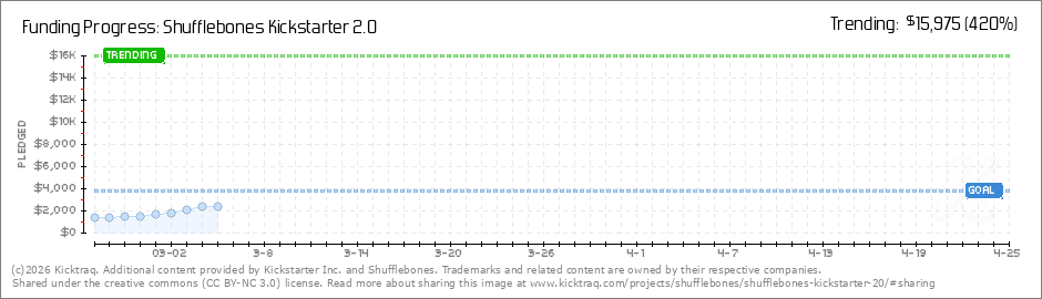 Help your backers reach your daily goals and help others see how you're doing. It's easy, with Kicktraq Mini.Here are a few quick snippits of code you can use to embed your personalized widget on your website, in your blog, and even on your favorite forum.