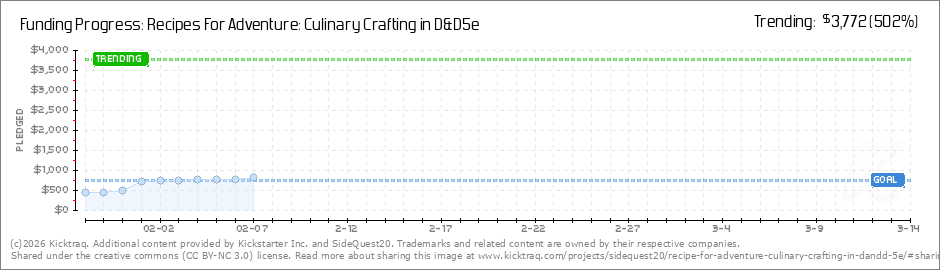Help your backers reach your daily goals and help others see how you're doing. It's easy, with Kicktraq Mini.Here are a few quick snippits of code you can use to embed your personalized widget on your website, in your blog, and even on your favorite forum.
