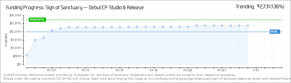 Help your backers reach your daily goals and help others see how you're doing. It's easy, with Kicktraq Mini.Here are a few quick snippits of code you can use to embed your personalized widget on your website, in your blog, and even on your favorite forum.