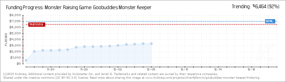 Help your backers reach your daily goals and help others see how you're doing. It's easy, with Kicktraq Mini.Here are a few quick snippits of code you can use to embed your personalized widget on your website, in your blog, and even on your favorite forum.