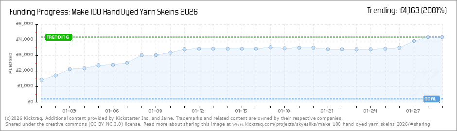 Thank you all so much for your support. An incredible start to the campaign and nearly at the end date. For anyone who pledged for an additional 3 or 4 skeins, it has just been pointed out to me that I have made a mistake and the price was too... (Read More)