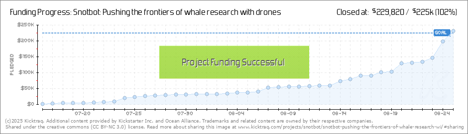 Thank you to all of our Snotbot supporters! It truly has been a humbling experience for all of us here at Ocean Alliance! We are so close to the finish line but we aren’t there yet and if we miss the final goal we lose it all - so please help with... (Read More)