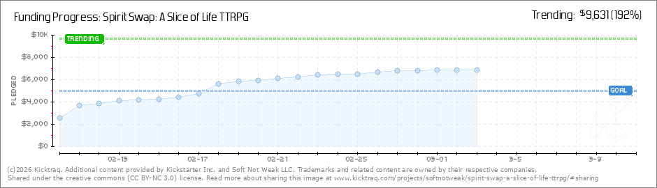 Help your backers reach your daily goals and help others see how you're doing. It's easy, with Kicktraq Mini.Here are a few quick snippits of code you can use to embed your personalized widget on your website, in your blog, and even on your favorite forum.