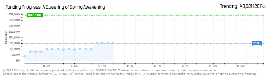 Help your backers reach your daily goals and help others see how you're doing. It's easy, with Kicktraq Mini.Here are a few quick snippits of code you can use to embed your personalized widget on your website, in your blog, and even on your favorite forum.