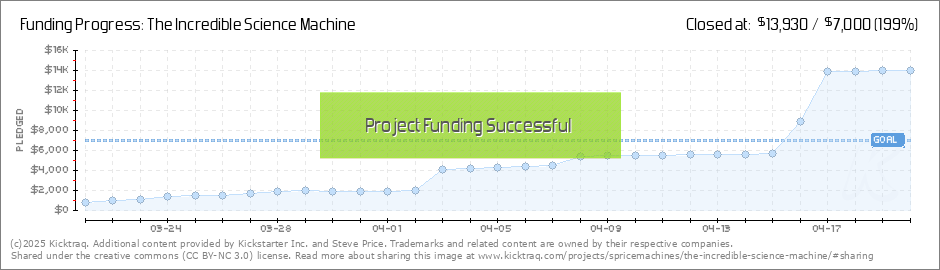 Dear Incredible Science Machine backers, Thank you for helping us reach over 60% of our goal! With just under 2 weeks remaining in the campaign, we are still on track towards reaching our goal. We would love it if you could continue to spread the... (Read More)