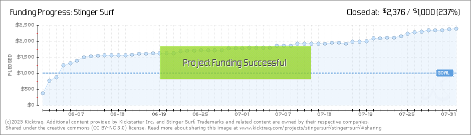 Aloha Everyone! We want to thank you for helping us reach our stretch goal of $2,000! We are beyond excited with the response we've gotten through Kickstarter, and our @stingersurf instagram and twitter accounts. Thanks to all of you who have... (Read More)