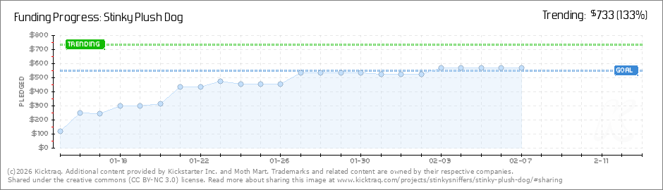 Help your backers reach your daily goals and help others see how you're doing. It's easy, with Kicktraq Mini.Here are a few quick snippits of code you can use to embed your personalized widget on your website, in your blog, and even on your favorite forum.