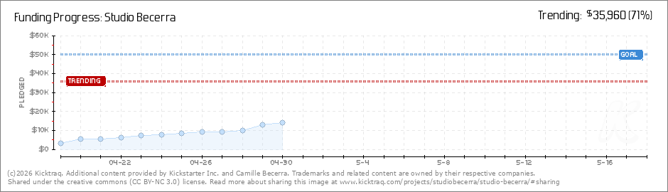 Help your backers reach your daily goals and help others see how you're doing. It's easy, with Kicktraq Mini.Here are a few quick snippits of code you can use to embed your personalized widget on your website, in your blog, and even on your favorite forum.