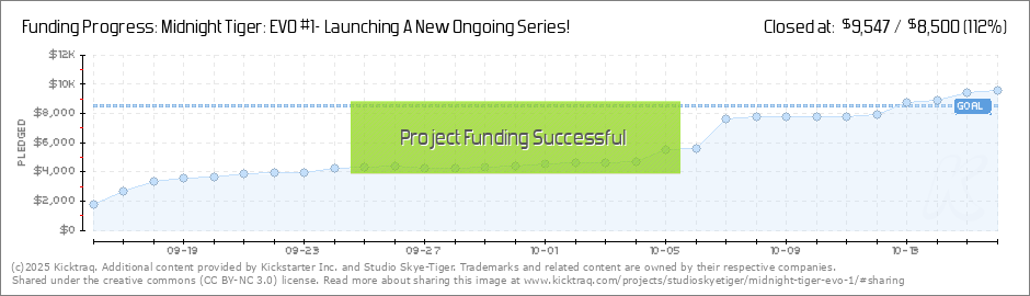 Exciting News! We've hit an incredible milestone—48% funded in just 8 days for Midnight Tiger: EVO #1! A huge THANK YOU to all our amazing supporters and new readers! You're not just backers; you're the heartbeat of Studio Skye-Tiger Comics,... (Read More)