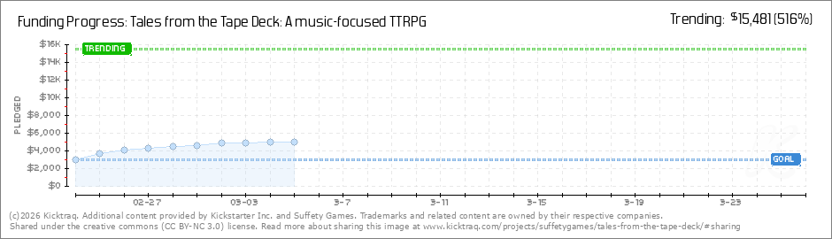 Help your backers reach your daily goals and help others see how you're doing. It's easy, with Kicktraq Mini.Here are a few quick snippits of code you can use to embed your personalized widget on your website, in your blog, and even on your favorite forum.