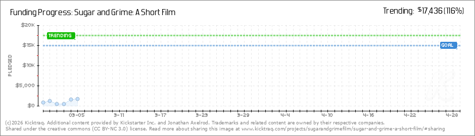 Help your backers reach your daily goals and help others see how you're doing. It's easy, with Kicktraq Mini.Here are a few quick snippits of code you can use to embed your personalized widget on your website, in your blog, and even on your favorite forum.