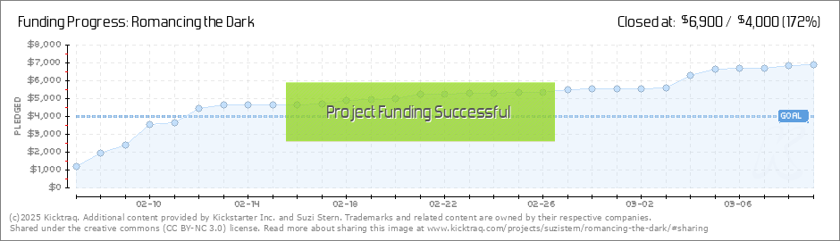 Dear supporters of "Romancing the Dark", This is a new approach to the funding of an artistic endeavor for me...I've never experienced anything like it. I am humbled, and overwhelmed with many layers of feelings...gratitude...amazement...love and... (Read More)