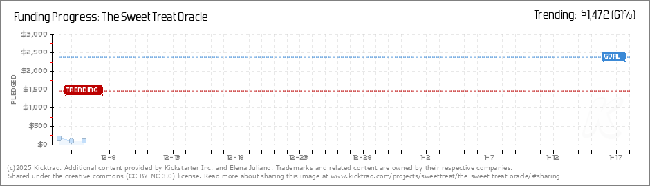 Help your backers reach your daily goals and help others see how you're doing. It's easy, with Kicktraq Mini.Here are a few quick snippits of code you can use to embed your personalized widget on your website, in your blog, and even on your favorite forum.