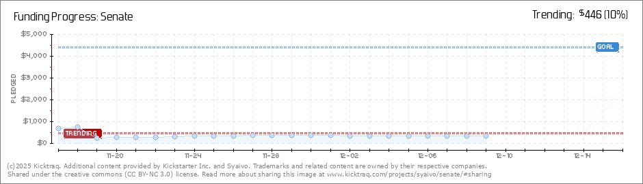 Help your backers reach your daily goals and help others see how you're doing. It's easy, with Kicktraq Mini.Here are a few quick snippits of code you can use to embed your personalized widget on your website, in your blog, and even on your favorite forum.