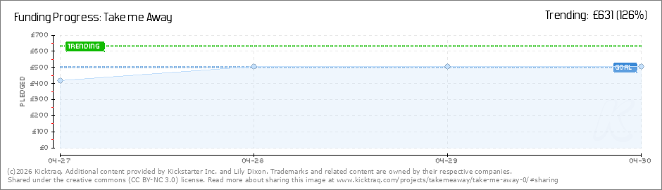 Help your backers reach your daily goals and help others see how you're doing. It's easy, with Kicktraq Mini.Here are a few quick snippits of code you can use to embed your personalized widget on your website, in your blog, and even on your favorite forum.