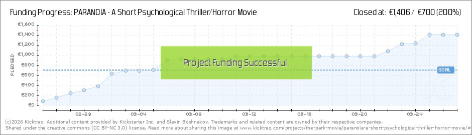 Hello, dear backers! I want to thank every single one of you for taking part in the campaign, which lead us to a complete fund on it. We will keep you all posted and up to date with the filming.All the best. (Read More)