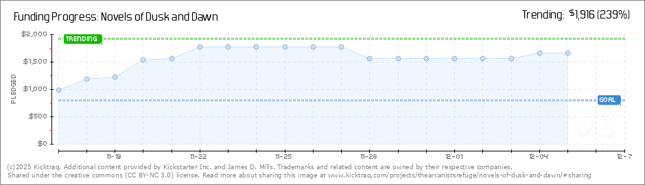 Queue Bon Jovi, we're half way there.I'm blown away by the growth of this campaign. We're on track to reach the first stretch goal. We're also halfway to my idealized goal of $3,000. When the campaign hits $2,000, all backers will receive an eBook of... (Read More)