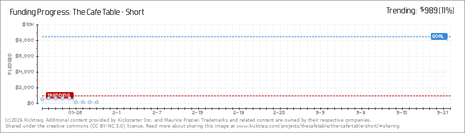 Help your backers reach your daily goals and help others see how you're doing. It's easy, with Kicktraq Mini.Here are a few quick snippits of code you can use to embed your personalized widget on your website, in your blog, and even on your favorite forum.