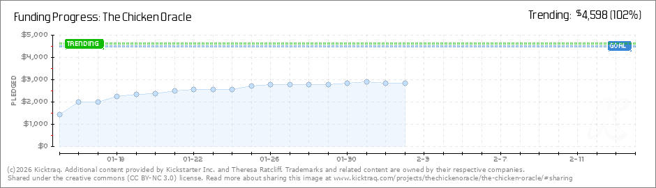 We are off to a fabulous start!! We are 55% funded in the first week!! Thank you so much to everyone who has supported The Chicken Oracle so far!! I'm excited to get these ladies out into the world!! (Read More)