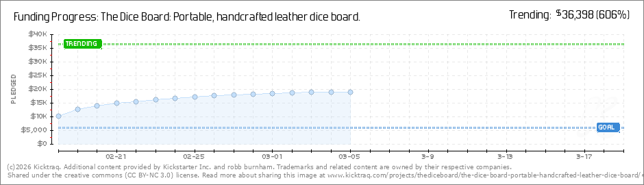 We are deeply grateful to all of The Dice Board backers. Thank you all so much for supporting our campaign and helping us make this a reality! So far we’ve reached $11,000 raised from over 110 backers! We were hopeful of a good first day but... (Read More)