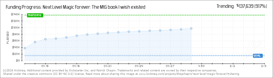 It’s time to reveal the next stretch goal. Next Level Magic Forever is three books in one. At $100,000, I’ll produce an audiobook add-on covering the third of the book recounting 33 years of stories and history from the game. The audiobook will... (Read More)