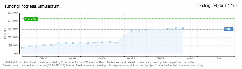 Help your backers reach your daily goals and help others see how you're doing. It's easy, with Kicktraq Mini.Here are a few quick snippits of code you can use to embed your personalized widget on your website, in your blog, and even on your favorite forum.