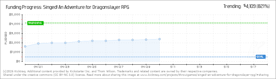 Thanks to all of you who pledged early - you have helped get this project off to a great start! We've already passed the stretch goal for the first pregen character. I've begun working on Sir Derrick the Brave (featured on the cover and in artwork... (Read More)