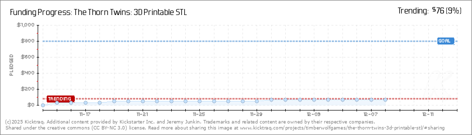 Help your backers reach your daily goals and help others see how you're doing. It's easy, with Kicktraq Mini.Here are a few quick snippits of code you can use to embed your personalized widget on your website, in your blog, and even on your favorite forum.