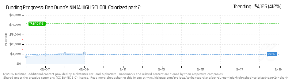 Help your backers reach your daily goals and help others see how you're doing. It's easy, with Kicktraq Mini.Here are a few quick snippits of code you can use to embed your personalized widget on your website, in your blog, and even on your favorite forum.