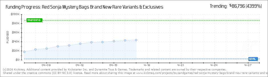 It's time to talk stretch goals! We are excited to announce our first one and it directly impacts the already huge value of every Red Sonja Mystery Bag. When we exceed $44,444 every bag will now also include a free vintage Red Sonja classic... (Read More)