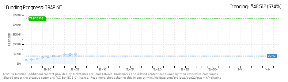 Help your backers reach your daily goals and help others see how you're doing. It's easy, with Kicktraq Mini.Here are a few quick snippits of code you can use to embed your personalized widget on your website, in your blog, and even on your favorite forum.