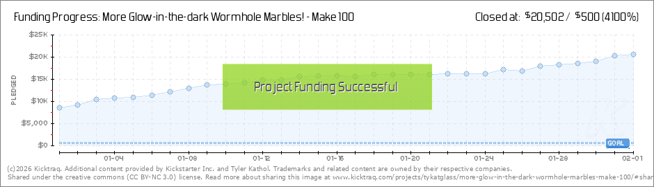 Thanks you all for backing my make 100 marbles this year! I think you will all be very happy with these marbles. I would also like to thank the repeat backers from previous years, I recognize quite a few names so far! This years project was funded... (Read More)