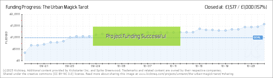 With 29 Days to go you've hit the goal of £1000, meaning we've definitely bought the Urban Magick Tarot to life! Please spread the word, and lets see if we can get some stretch goal hit to add some seriously classy stuff to the rewards! THANK YOU... (Read More)