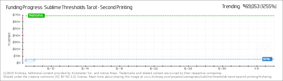 Dear Sublime Thresholds Tarot Backers, it's Day 2 and in less than 24 hours we are close to the funding goal! Let's hope today will be the day! As mentioned in my pledge messages to you, I couldn't do any of this without you, and your enthusiasm for... (Read More)