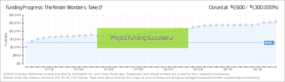 In just a bit over 12 hours, YOU have brought the Kinder Wonders: Take 2 campaign to a whopping 86% of its funding goal!!! We promised this time, we'd be smarter, stronger, and supercharged! And through your support, you've done more than just... (Read More)