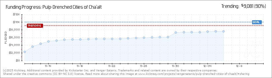 I added another add-on, as well as, two new reward tiers that both include the "Cha'alt PDF bundle." So, now you can get the Pulp-Drenched Cities PDF with the PDF bundle or the physical Pulp-Drenched Cities book and PDF bundle. In both cases, the... (Read More)