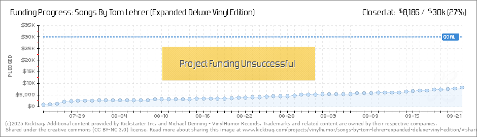 Even though there's still a ways to go before the goal is met, I wanted to say to all of you supporters and backers on this first release on VinylHumor Records a massive and heartfelt thank you! As this reissue of Tom Lehrer's first album and what... (Read More)
