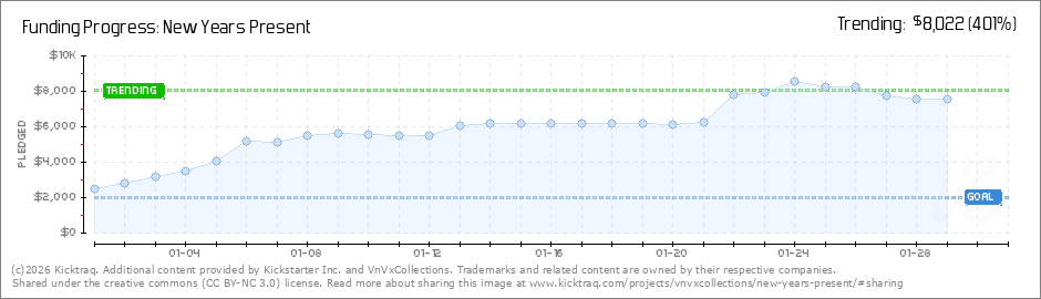 Help your backers reach your daily goals and help others see how you're doing. It's easy, with Kicktraq Mini.Here are a few quick snippits of code you can use to embed your personalized widget on your website, in your blog, and even on your favorite forum.