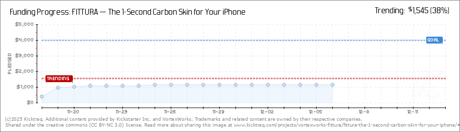 Help your backers reach your daily goals and help others see how you're doing. It's easy, with Kicktraq Mini.Here are a few quick snippits of code you can use to embed your personalized widget on your website, in your blog, and even on your favorite forum.