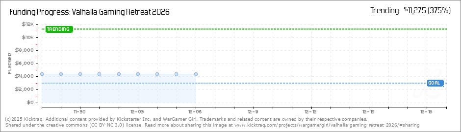 Help your backers reach your daily goals and help others see how you're doing. It's easy, with Kicktraq Mini.Here are a few quick snippits of code you can use to embed your personalized widget on your website, in your blog, and even on your favorite forum.