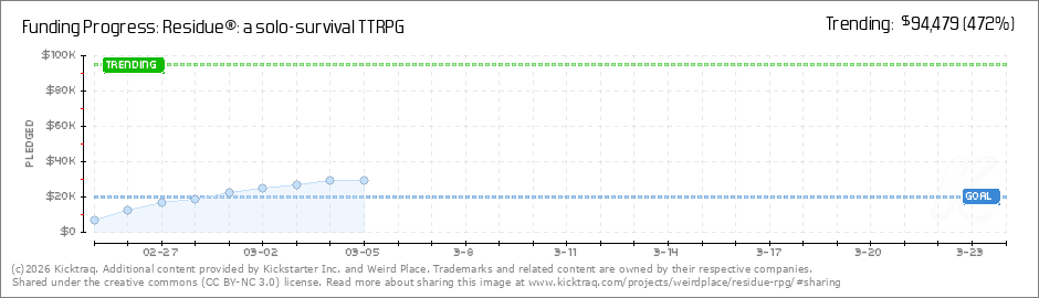 Thank you everyone who helped us fund our game! We’re beyond excited to make Residue® a reality. We can't believe we got funded in less than 96 hours! We’re already hard at work on stretch goals to make the game as memorable and well-produced as... (Read More)
