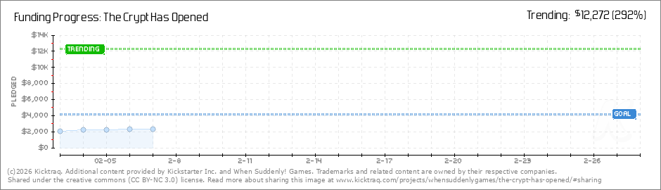 Day 2We have entered the second day of the campaign! Do you feel the skeletal grasp of the Crypt yet? I sure do.As of writing this we're $5 away from 50% funded! What a fantastic first 24 hours. I feel confident that'll we will hit our funding goal... (Read More)