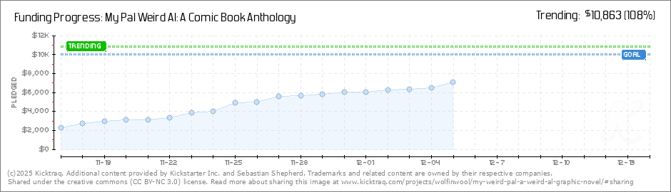 Help your backers reach your daily goals and help others see how you're doing. It's easy, with Kicktraq Mini.Here are a few quick snippits of code you can use to embed your personalized widget on your website, in your blog, and even on your favorite forum.