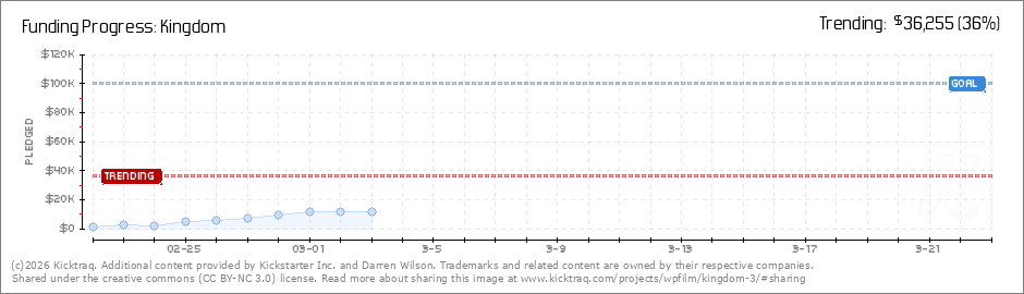 Help your backers reach your daily goals and help others see how you're doing. It's easy, with Kicktraq Mini.Here are a few quick snippits of code you can use to embed your personalized widget on your website, in your blog, and even on your favorite forum.