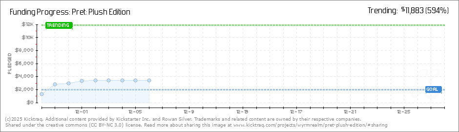 Help your backers reach your daily goals and help others see how you're doing. It's easy, with Kicktraq Mini.Here are a few quick snippits of code you can use to embed your personalized widget on your website, in your blog, and even on your favorite forum.
