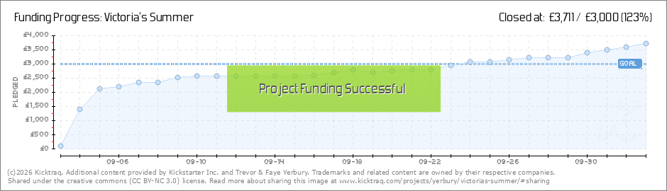 Thank you to all our supporters for showing us such remarkable support. After only 1 day we are well on track to meet our target to bring Victoria's Summer to life. Please feel free to share the link so we can ensure we reach as wide an audience as... (Read More)